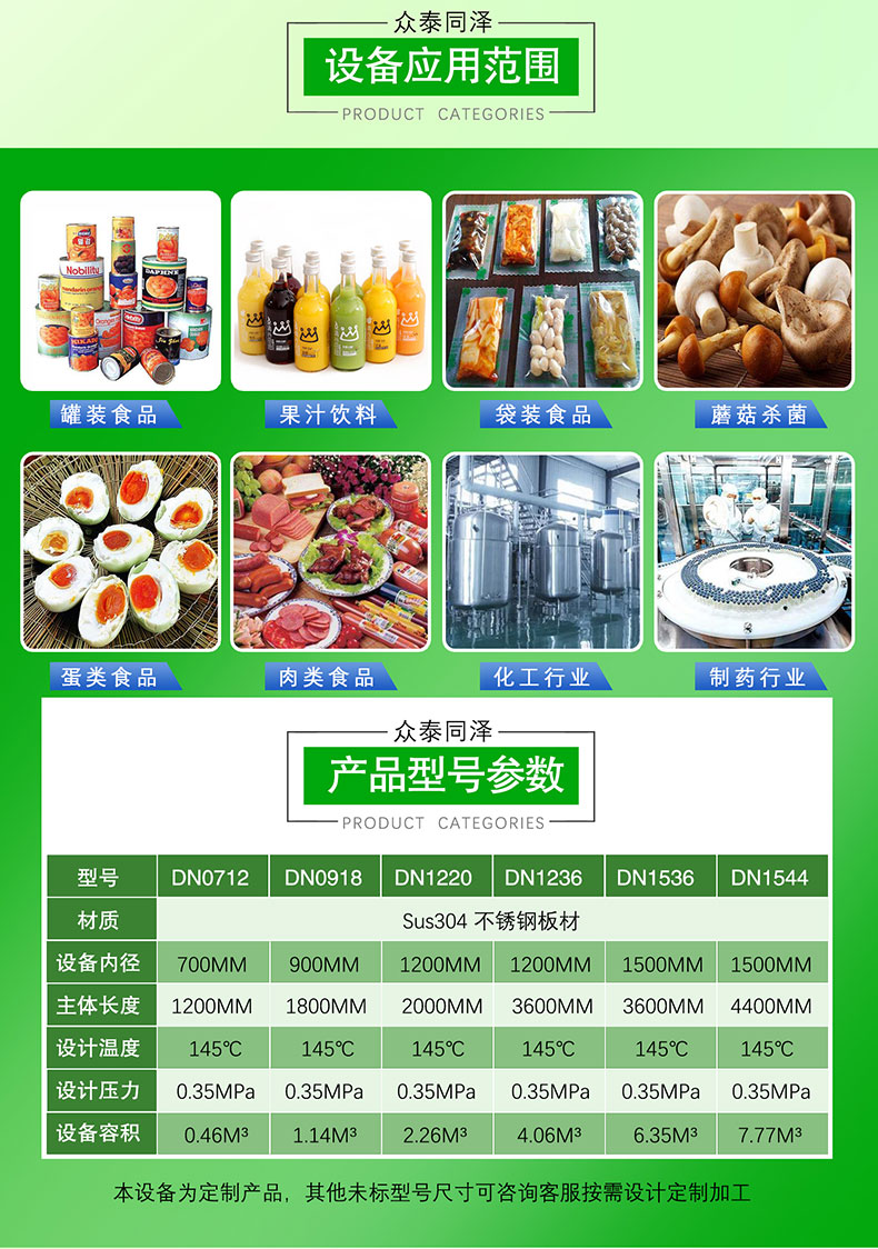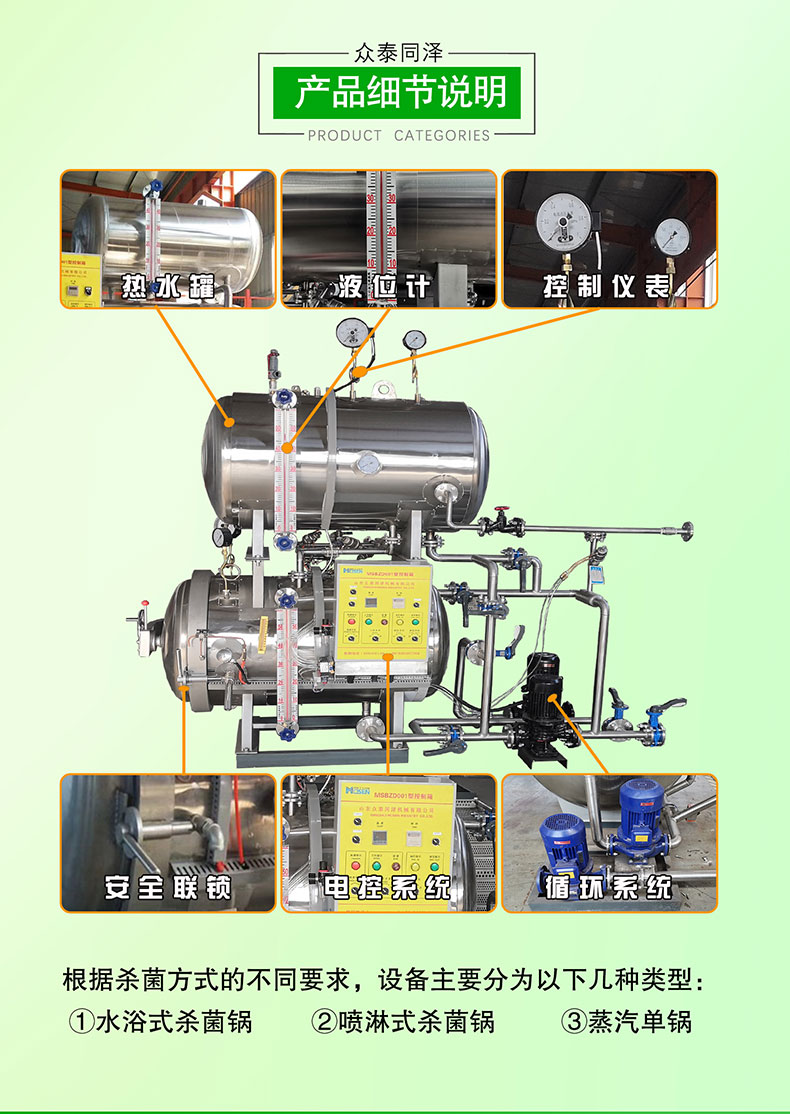 7.改設(shè)備可以用于食用菌,肉類(lèi)、罐頭產(chǎn)品、飲料,醬菜等產(chǎn)品的殺菌。