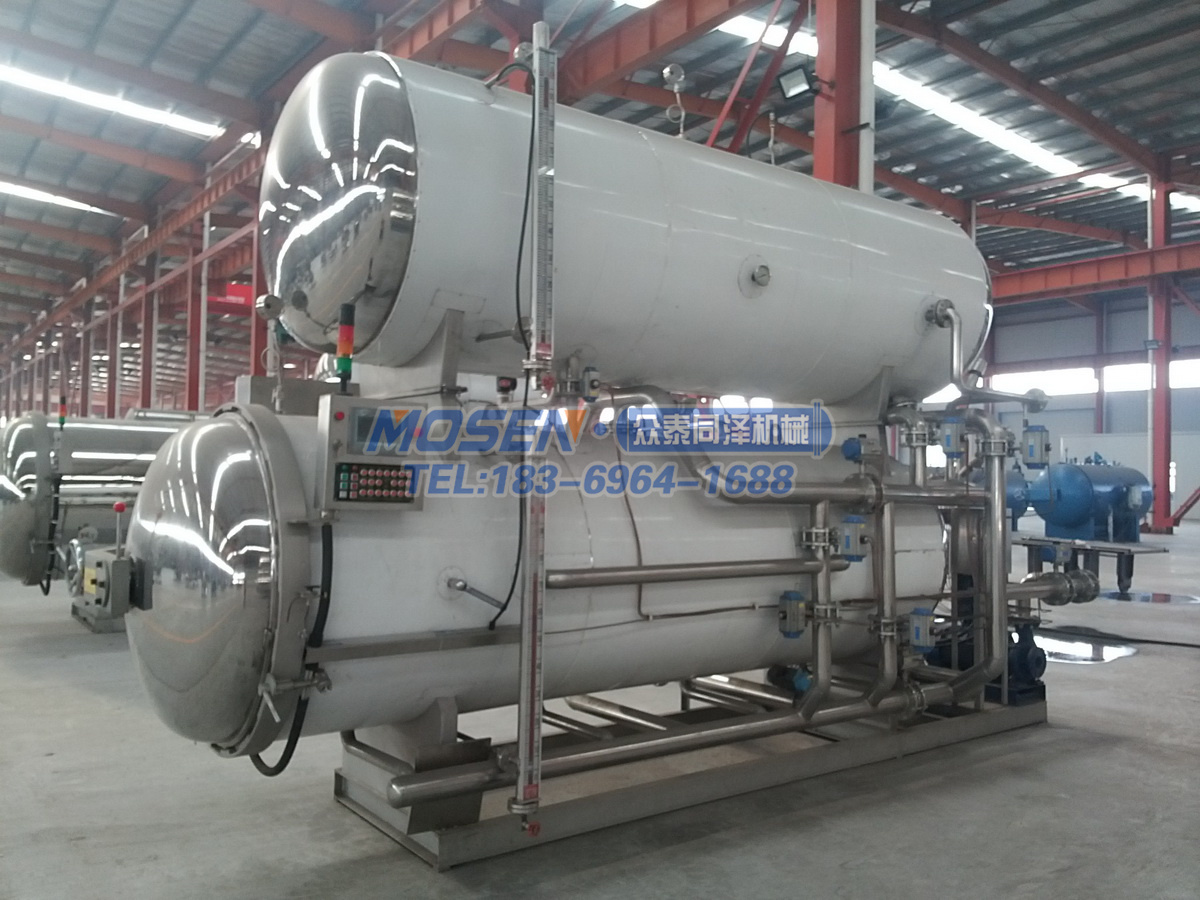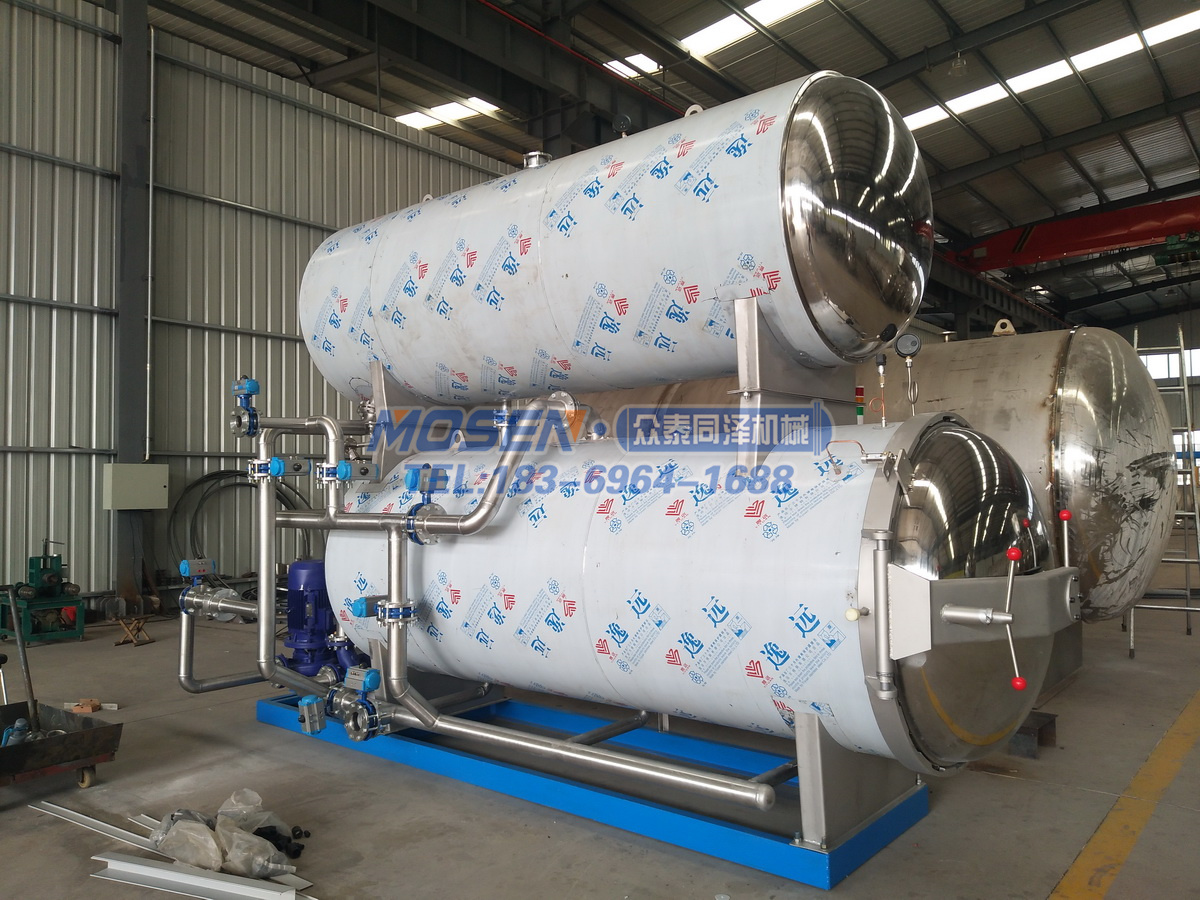 1、熱水循環(huán)式殺菌:殺菌時(shí)鍋內(nèi)食品全部被熱水浸泡,這種方式熱分布比較均勻。