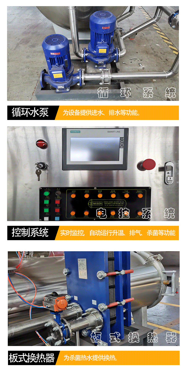 而且水通過換熱器進行加熱和冷卻,升溫和冷卻速度迅速,能、、快速、穩(wěn)定的對鍋內(nèi)產(chǎn)品進行殺菌。