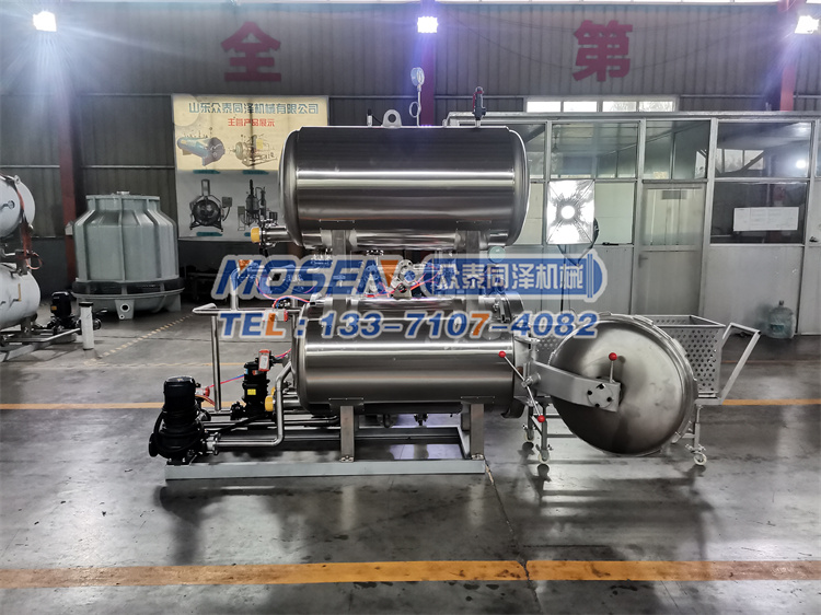 牛肉殺菌原理是通過熱水罐內121℃的殺菌水注入鍋內(中和后溫度在100-110℃),完全浸泡全部食品,