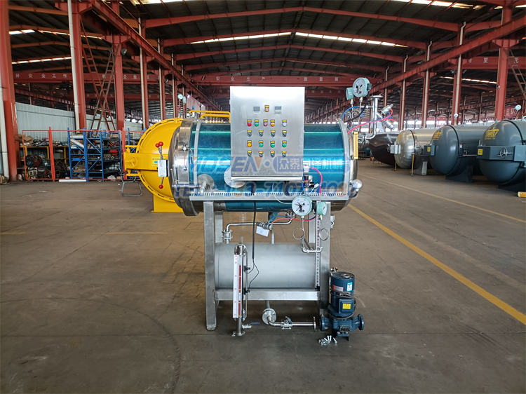 鍋體:包括鍋身、鍋蓋、彎臂、軌道、密封圈、滾輪、安全聯鎖裝置、蒸汽管、噴淋管、冷卻水管等。